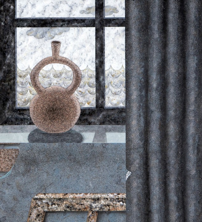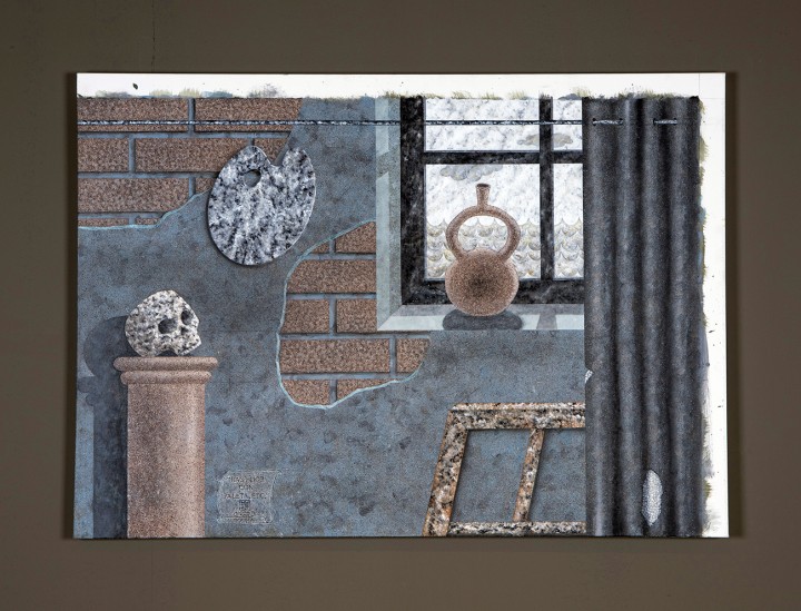 2023. Pintura acrílica y en aerosol ("granit effect") sobre lienzo (algodón), 100 x 140 cms. [Fotos: Sebastián Mejía]