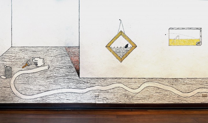 2025. Témpera sólida sobre muro, 1034 x 300 cms. Exposición "Pinturas de salón", Centro Patrimonial Posada del Corregidor, Stgo., Chile. Asistencia de Antonia Gigoux.