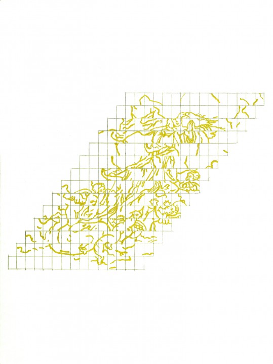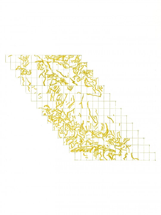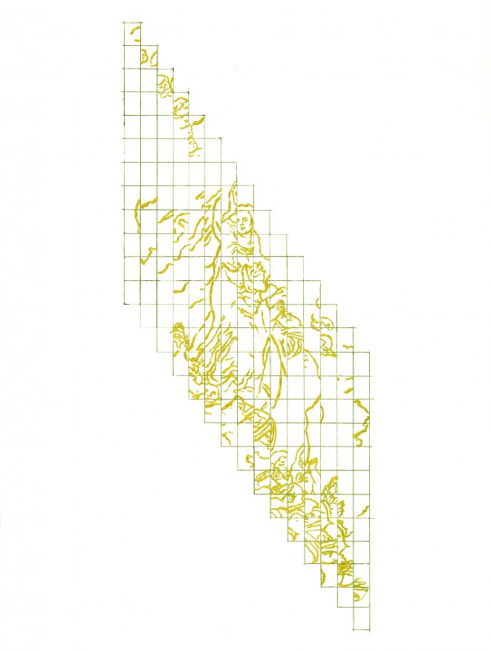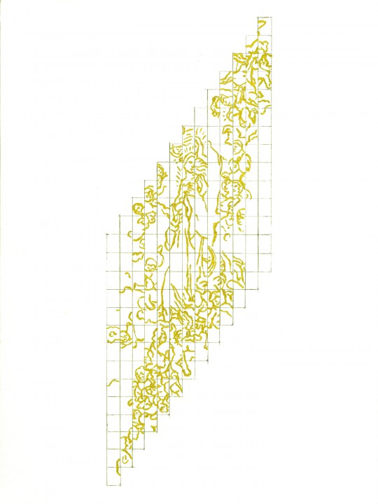 Purpurina dorada y grafito sobre papel, 32 x 24 cms c/u.