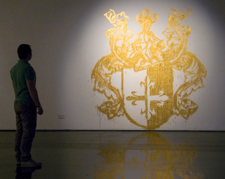 2009. Pintura acrílica sobre muro aplicada con los dedos, 250 x 246, 5 cms aprox. Exposición "Material Ligero", Margaret Lawrence Gallery, Melbourne, Australia.