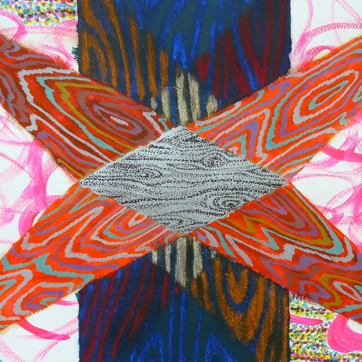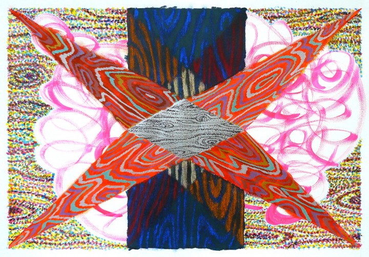 Grafito, pastel seco, acuarela, gouache y plumón metálico sobre papel, 49,7 x 72 cms.