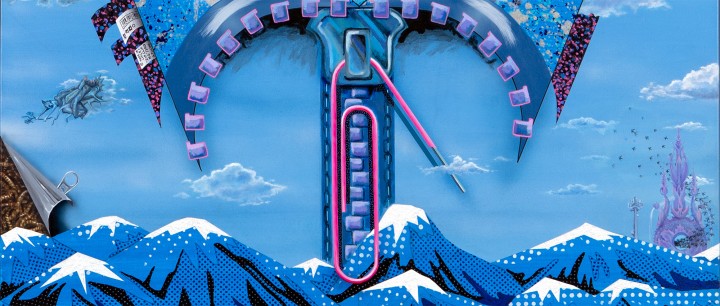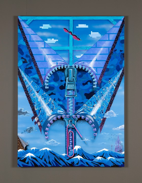 "Zip (clip) #1" 2022. Pintura acrílica sobre lienzo (algodón), 130 x 110 cms. "Zip (clip) #2" 2023. Pintura acrílica con arena y espesante sobre lienzo (algodón), 140 x 100 cms. [Fotos: Sebastián Mejía]